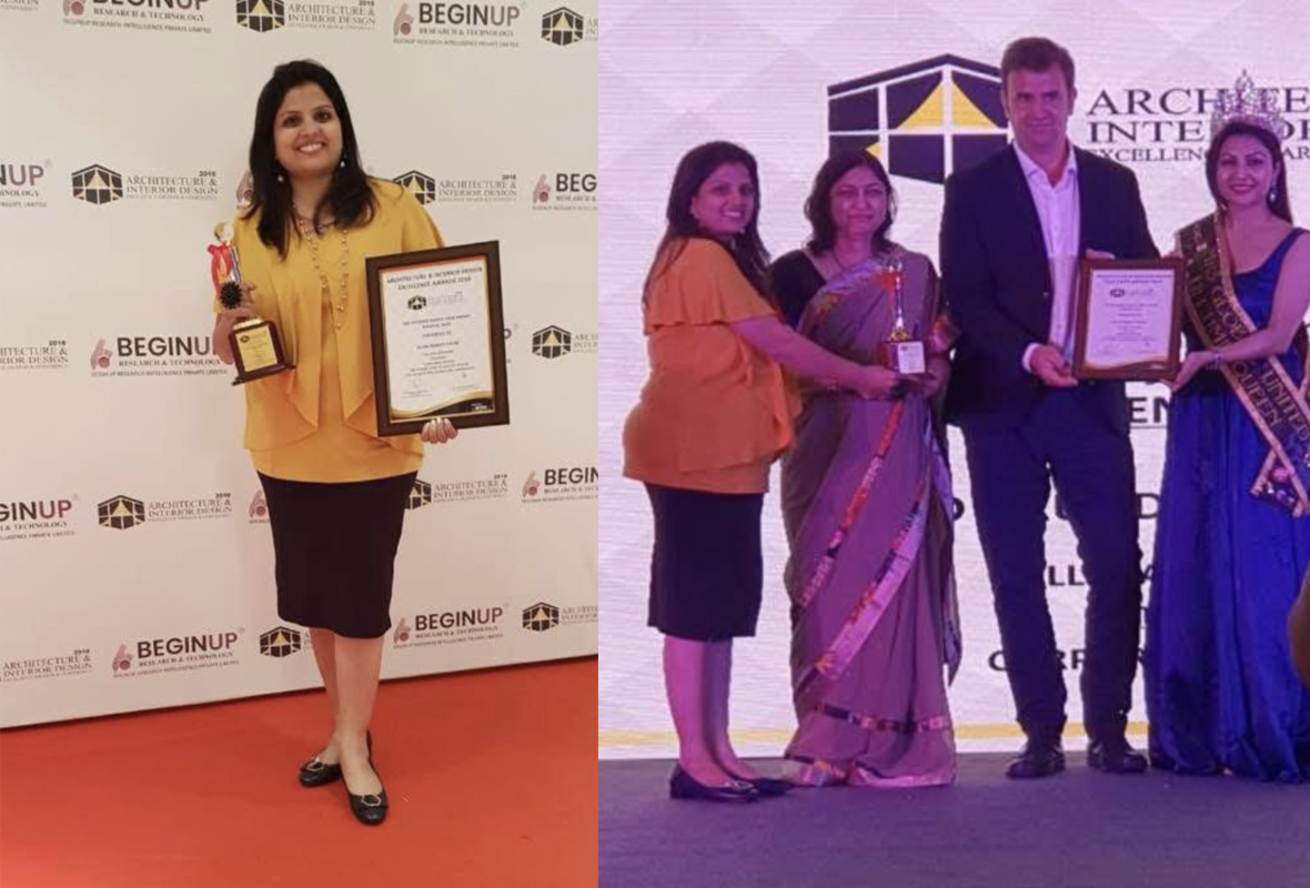 Excellence Award in Architectural & Interior Design for a small corporate office project, recognizing thoughtful space planning, refined aesthetics, and functional efficiency. The design reflects a seamless balance of professionalism, comfort, and contemporary elegance tailored to a compact workspace.